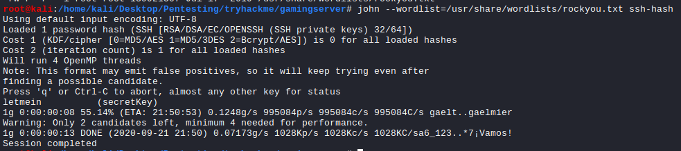 john --wordlist=/usr/share/wordlists/rockyou.txt ssh-hash